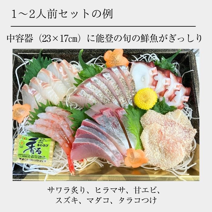 毎朝水揚げされる能登の鮮魚を、すぐに捌き、"刺身盛り"の"冷蔵便"で朝獲れ当日出荷。