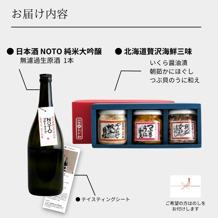 日本酒とおつまみをセットにして、冷蔵便でお届けします。
