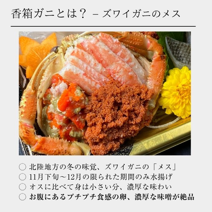 冬の日本海で、たった約2ヶ月間しか漁が解禁されない幻のカニ。それが、香箱ガニ(ズワイガニのメス)です。
