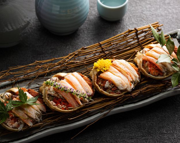 食べ終わった後は甲羅を少し炙り、50度程度に温めた日本酒を注いで「甲羅酒」をお愉しみください。体の芯から温まる、至福のひとときが訪れます。