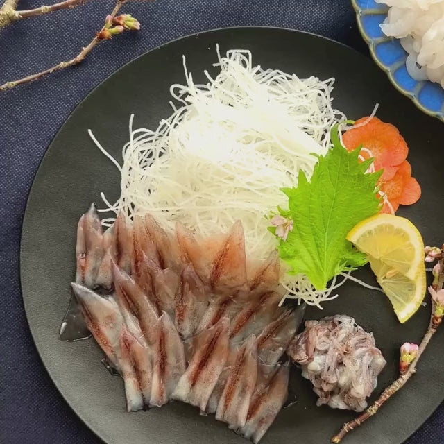 甘く新鮮なホタルイカの生のお刺身は、県外ではほとんど流通しない特別な味わいです。