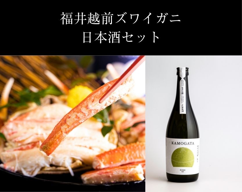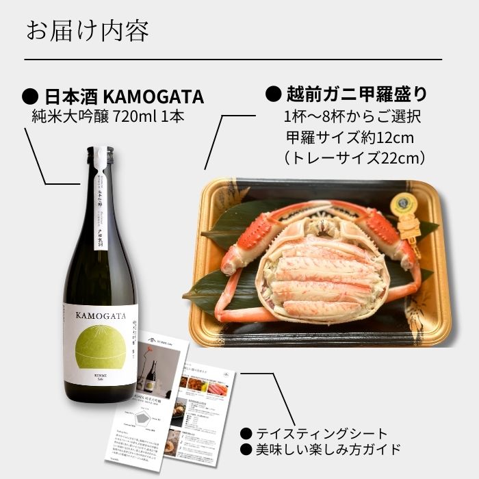 日本酒はミシュラン店でも採用されている、少量生産の無濾過生原酒。濃厚な甘みの越前ガニに合う、芳醇な純米大吟醸がセットで届きます。
